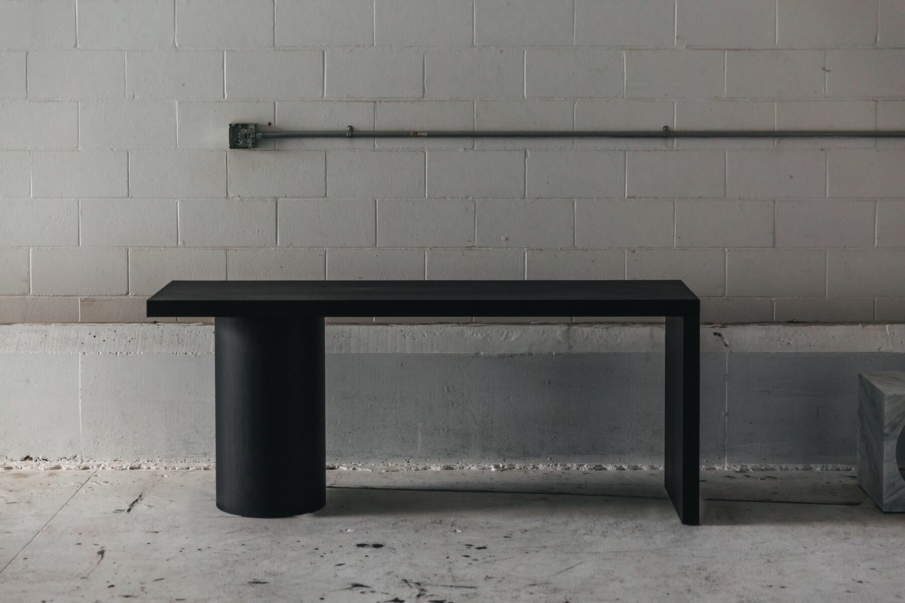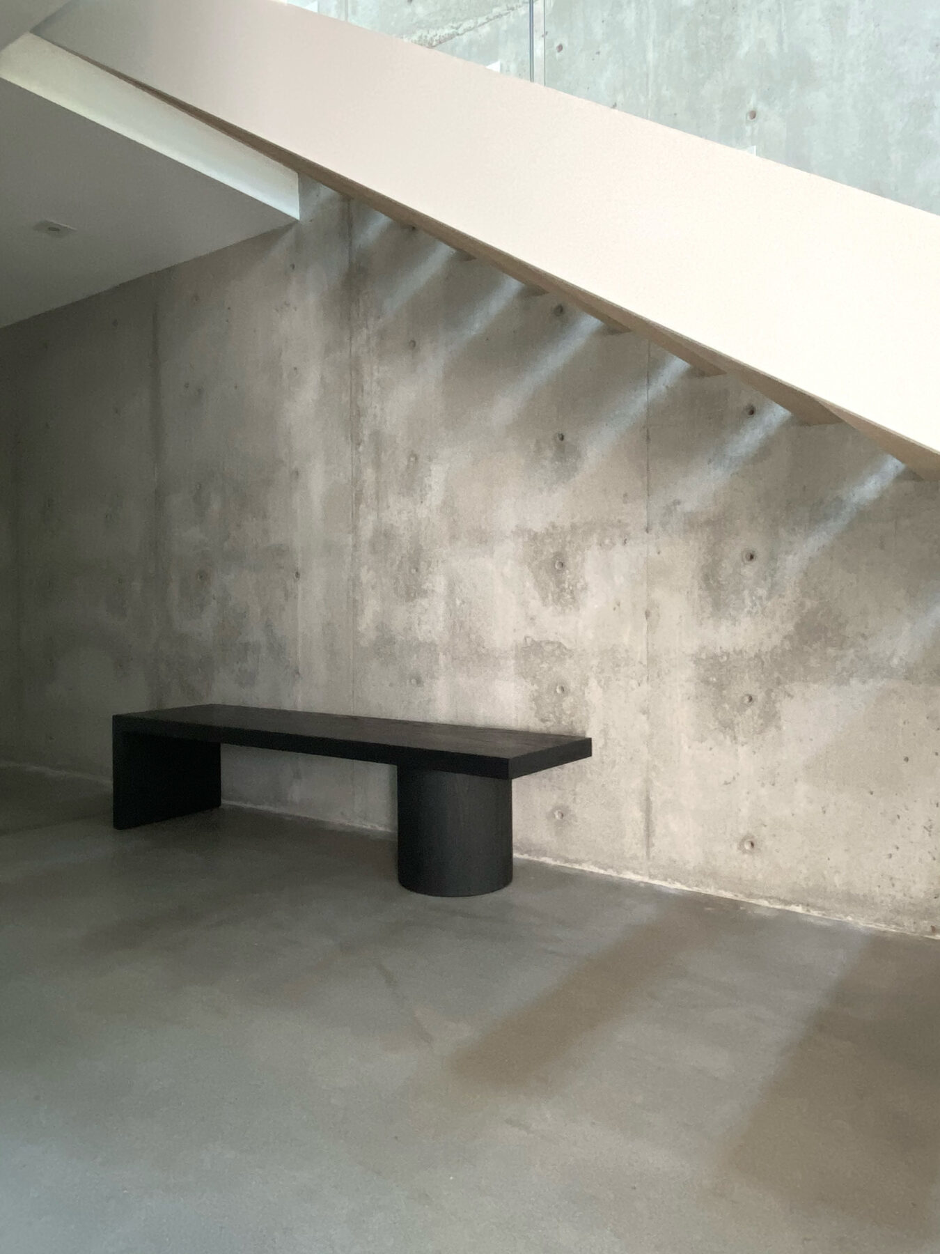A collection of monumental furniture pieces designed around a large diameter, lathe turned solid wood support column and planes. Hand-crafted from solid 2.25″ thick hardwood.